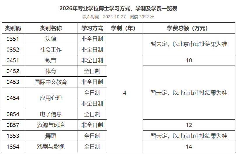 附件2:2026年专业学位博士研究生学习方式、学制及学费一览表